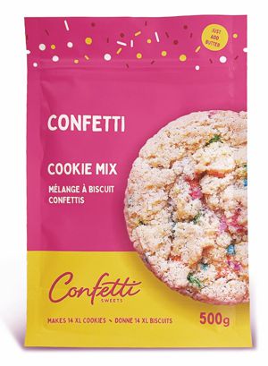 Confetti Sweets – a Canadian Company out of Edmonton, Alberta, have improved their smash-hit product – Totally Awesome Cookie Mix! After working with food scientists, their formulation has made baking fresh cookies even easier. Only one added ingredient – butter – is needed to add to the mix in order to make the perfect cookies every time. Previously the customer was required to add butter, egg, vanilla (and molasses for gingersnap cookies). Confetti Sweets’ original cookie mix is selling in grocery stores throughout the country and sales are expected to jump even more with the new formulation!