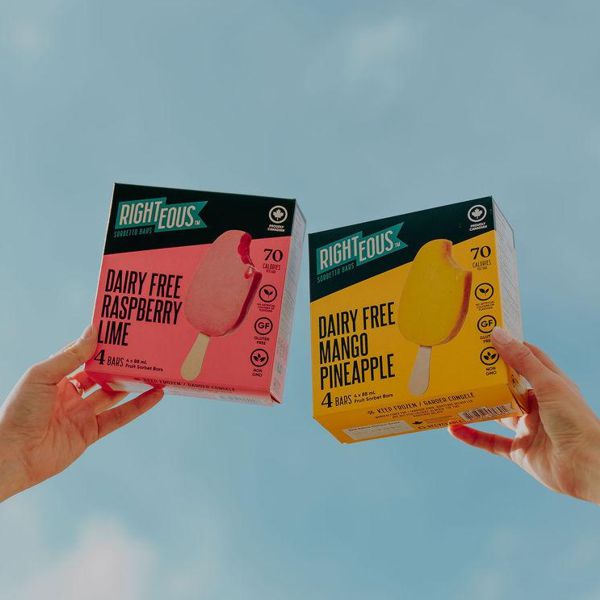 The launch lineup includes Dairy Free Raspberry Lime and Dairy Free Mango Pineapple, available in convenient 4-packs. And the good news? They’re not going anywhere. Sorbetto Bars are here to stay, marking the beginning of an exciting new chapter for Righteous.